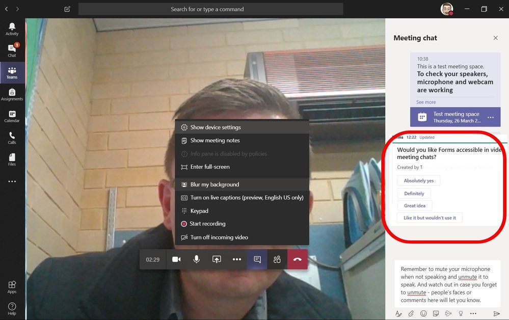 Interactivity / Activities during Teams meetings (surveys etc)