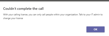 I've spoken with the affected user and it seems that she was typing the external e-mail address into the calls app in Teams and this does indeed give the same error when I try it: