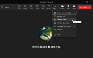 Microsoft Teams cannot create meeting notes for a meeting in the General Channel