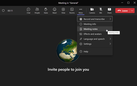 Microsoft Teams cannot create meeting notes for a meeting in the General Channel
