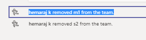In Microsoft Teams group, if we are removing a particular user from a channel its showing in General Tab as (hemaraj k removed m1 from the team).