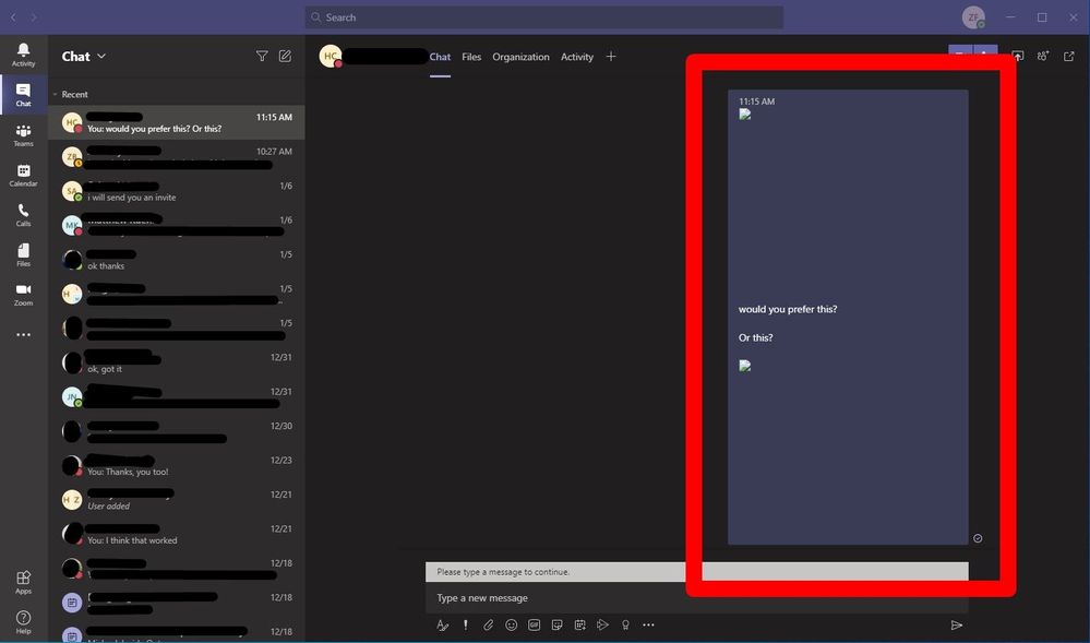Microsoft Teams Chat Pasted Screenshot Image Disappears