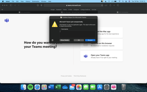 Every time I try to open the Teams app or use a link to join a meeting via the app I receive this pop up message. Anyone know how to fix this? I've tried uninstalling and reinstalling.