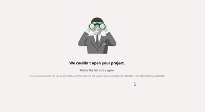 - This looks like a bug that can be fixed by Microsoft if you provide the correlation ID. Check out this post https://techcommunity.microsoft.com/t5/project/quot-we-couldn-t-open-your-project-quot/m-p/1685806/page/2 where many people report the same. I'd suggest you tag onto this one, or open a ticket with Microsoft and mention this thread.