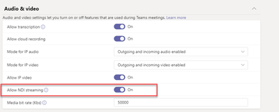 Yesterday NDI was not available on the teams client. We looked at the Teams admin center, and the option had vanished from the meeting polices.