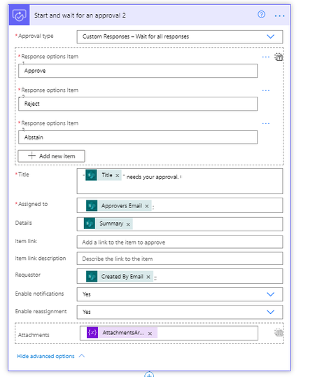 We have the following "Custom Responses - Wait for all responses" action inside MS Flow:- Where we are attaching a file to the response email >> now the email which will be sent will c...