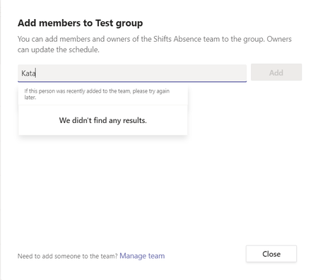 Not possible to add new member to MS Shifts after team name change