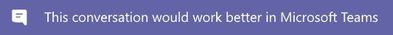 I have been searching for a friendly graphic I can add to emails when I reply to lengthy dialogues, to let people know, that this conversation would work better in Teams. The message could be something like "This conversation would work better in Microsoft Teams".