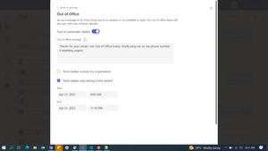Hi, I had scheduled out of Office today (April 21 2023) from 8.00 AM to 11.30 PM and it was saved without any issues. But as I open the teams application today, my status does not reflect out of off...