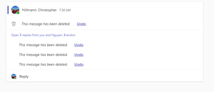 If you delete the main message other messages stay and you have to delete them one by one as far as I know. Maybe it is a good one for the feedback channel here:https://feedbackportal.microsoft.com/feedback/idea/792d44ca-cb74-ee11-a81c-0022484e5453
