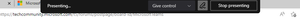 The Presenting Bar is always present and hides the top part of the screen during presentations. There is no way to un-pin it. See screenshot below.