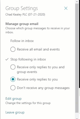 Anyway, a recent issue came to our attention that seems to impact (at least) "PLC" Teams. Long story short, the "Following" setting seems to be stuck on "Receive only replies to you". Users can go to that setting, change it to whatever they want, and it reverts to that option. See the gif below:
