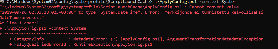 It has got to be something about our localization as you can see our error in screenshot of powershell attachment.