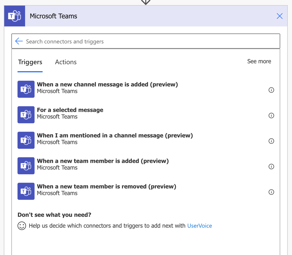 You can suggest a trigger option at Teams UserVoice as per the screen shot.