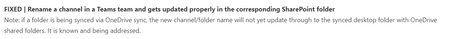 SharePoint team says the Teams Channel rename bug is fixed, but it doesn't appear to be