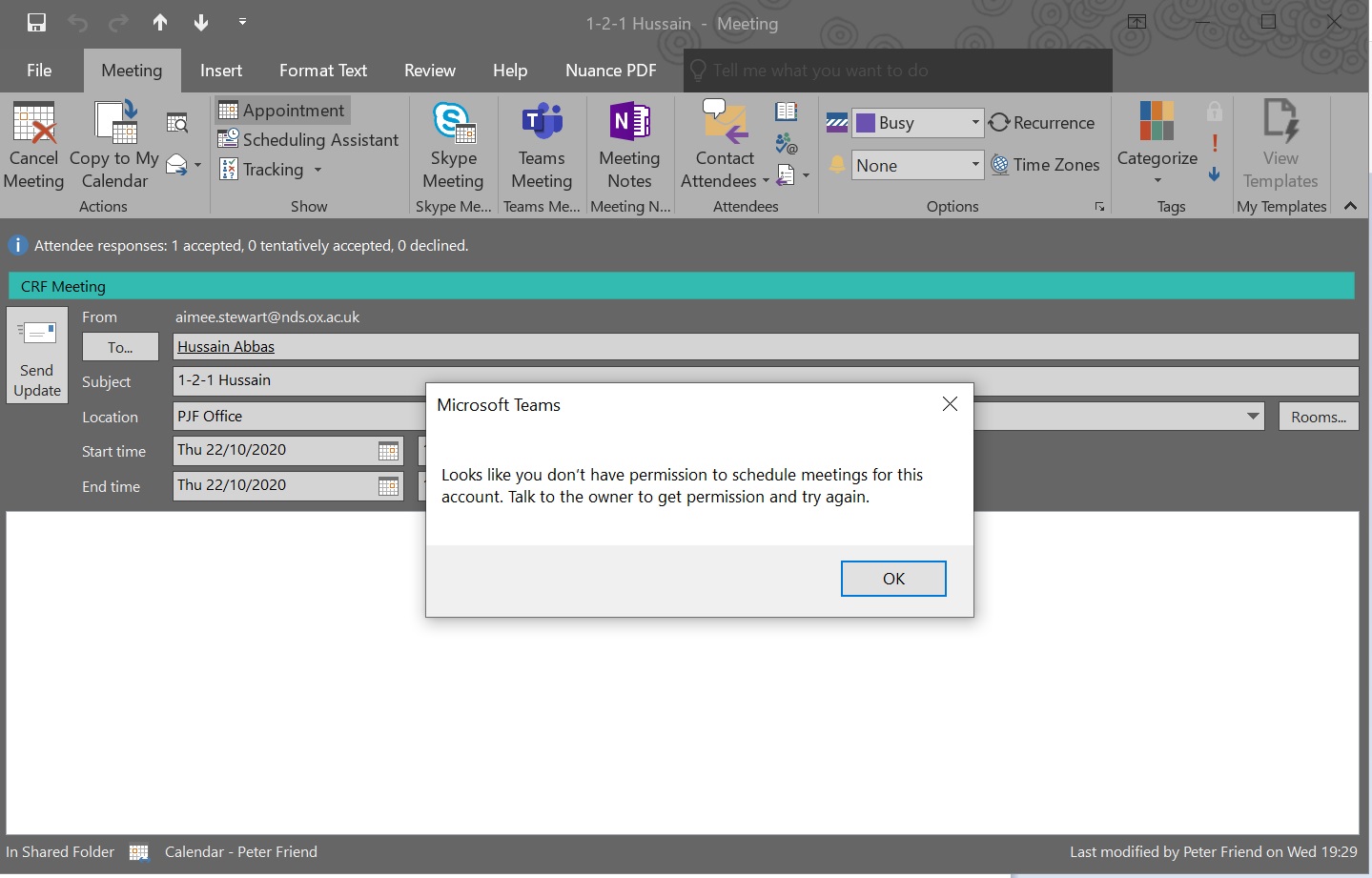 Suddenly lost permission to create Teams meetings