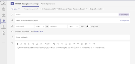Hello, I do not use Outlook. I don't like Outlook! But I use Teams. There is a calendar in Teams. How to set an alert to events in this calendar???