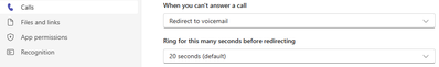 TAC - Calling policiesUntil recently (1-2 month?) users had the option to set the rule "When you can't answer a call" and "Ring for this many seconds before redirecting" in the Teams client.