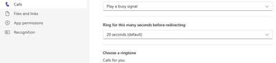Teams client - settings - callsNow, only the 'Ring for this many seconds before redirecting' option is shown, and sometimes even that setting is unavailable. We cannot rule out an issue with the Teams client; however, resetting the app does not help at the moment.