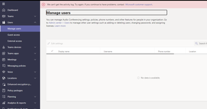- Oct 20, 2022No issues here. Does the same thing happen if you use an InPrivate browser session? If that fixes it, you may need to delete your cookies (navigate to edge://settings/siteData and search for "admin.teams.microsoft.com").