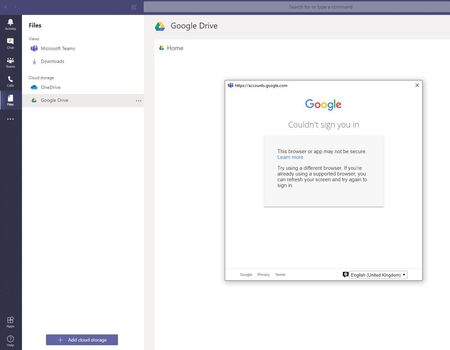 Teams Desktop App not connecting to Google Drive, Zoom