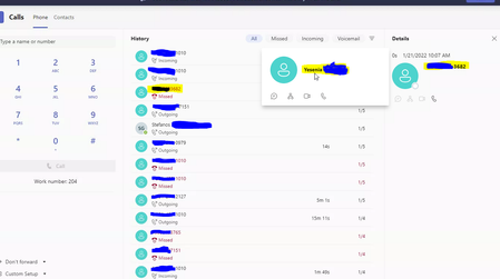 Hello, If you look at the above screenshot, the History in Calls on Teams does not show the contact name for known contacts in the list consistently. You have to select the call, then cl...