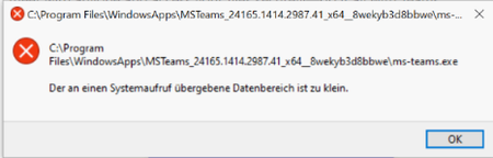 Hello π I wanted to ask if someone of you had as well the same issue when you start MS Teams: "The data area passed to a system call is too small". The Microsoft Store has been blocked. ...