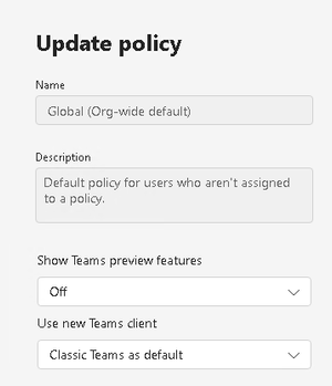 Use this value to have classic Teams the default version. The new Teams toggle switch displays to let users opt into the new Teams and switch back if needed. Note: This option was previously called Users can choose.