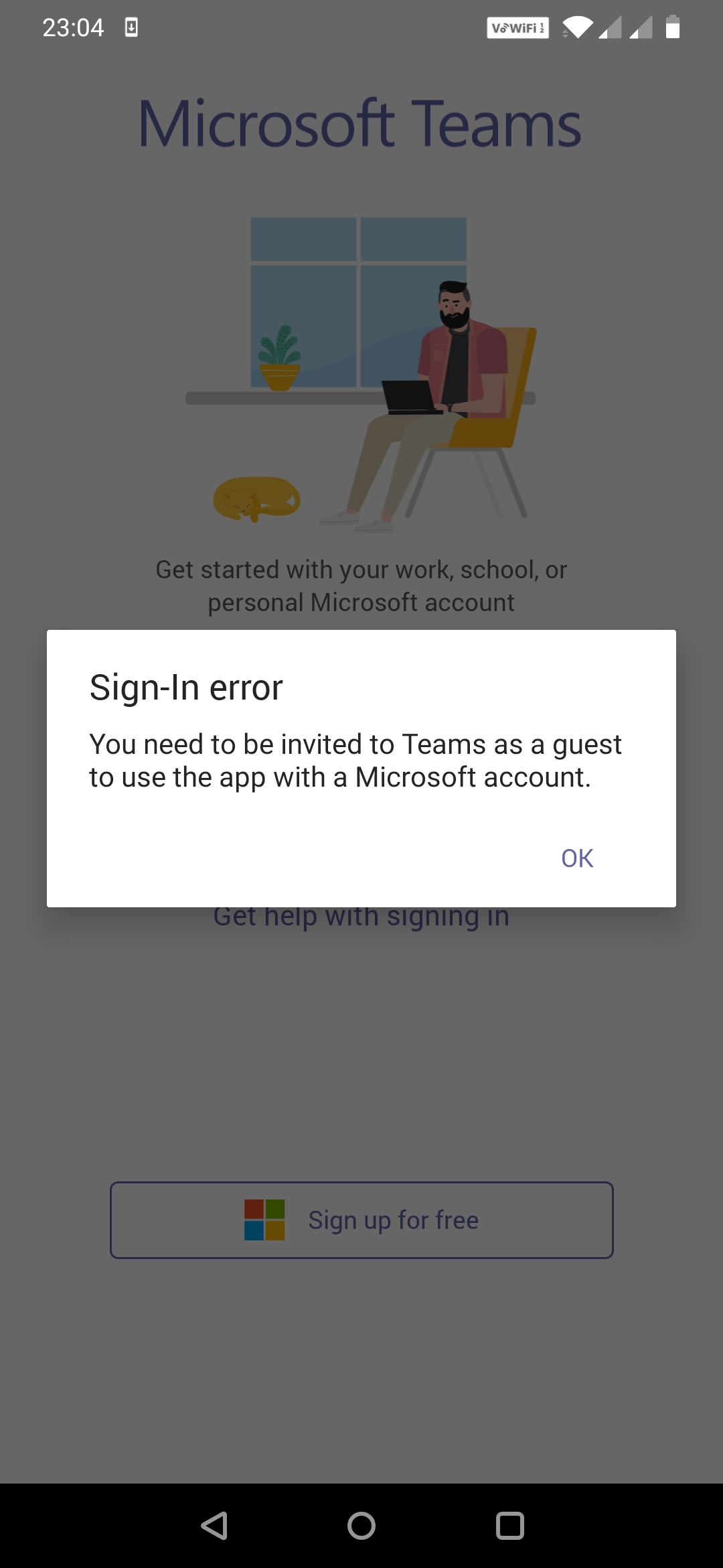 Unable to login teams app on mobile