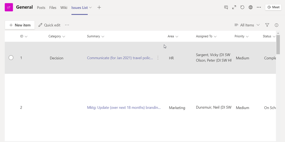 I was wondering if Teams had the ability to upload information from an Excel file to the Issues log in Teams?