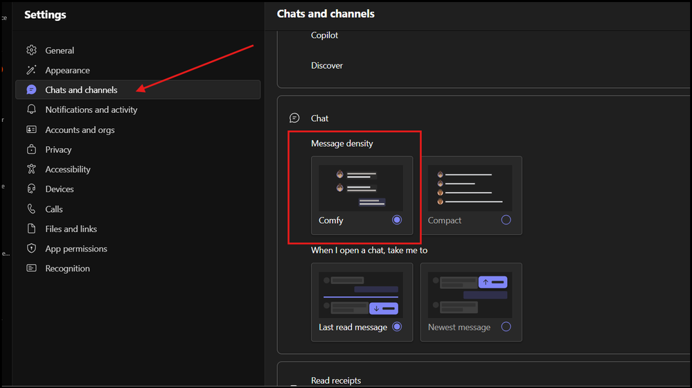 Other people with the same issue seemed to fix it by setting it to “compact”, restarting Teams, and setting it back to “comfy”.