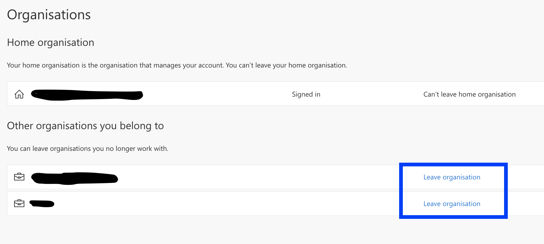 That didn't help. It's not clear. I only log into Microsoft with 1 account, and that account is signed in through SSO. The organisations to which I had guest membership added me with that same account.