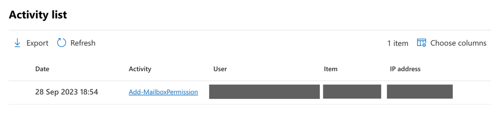 When you click that, under the "Item" column is the name of the user whose mailbox was changed. Sometimes it won't show the name but the ID number instead. If this happens you have to copy the ID number and paste it into the user search of AAD (Entra) to see which user's mailbox it was.