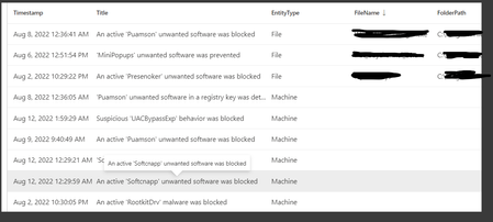 |project Timestamp,Title,EntityType,FileName,FolderPath,AlertId,SHA1,SHA256,Category,AdditionalFields