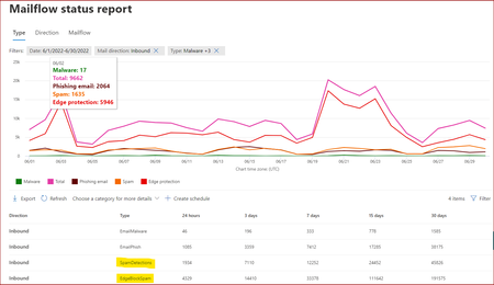 What is the difference between EdgeBlockSpam and SpamDetections? For my monthly metrics I am to tally Malware blocked, Phishing blocked, and Spam blocked. Is SpamDetections included in the EdgeBloc...