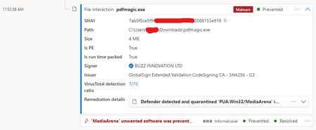 Find the file creation time/date in Microsoft 365 Defender Alerts for blocked software