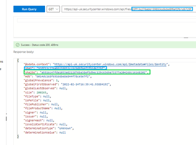 The documentation says sha1 or sha256, but when looking at the API explorer in the M365D portal, the URL in the sample query for getting file info shows as below, with "file-sha1", so maybe the API only expects a sha1. This seems to be something that only Microsoft can shed light on.