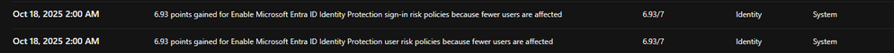 For example, the secure score is improving for identity. I implemented user risk and sign in risk CA policies on the 14th and on the 18th defender is increasing the secure score