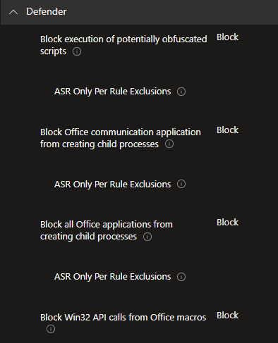 I powershelled into one of the targeted endpoints and confirmed the ASR rules are active on the machine.