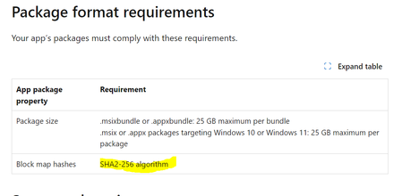 Hi There Does the Windows Store support or plan to support appxbundles/appx/MSIX packages signed with SHA-384 digest? The documentation seems to restrict the hash algo to SHA-256 (https://learn.m...