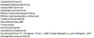Assuming the file is in VFS\\ProgramFilesX86\\JADE\hmlpphe\\c_bin\INIfiles, then you should add the workingDirectory:"" entry.