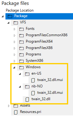 To Summarise, my MSIX package only contains my application, a simple .NET application that interacts with the TWAIN Data Source manager found in c:\windows\system32\twaindsm.dll