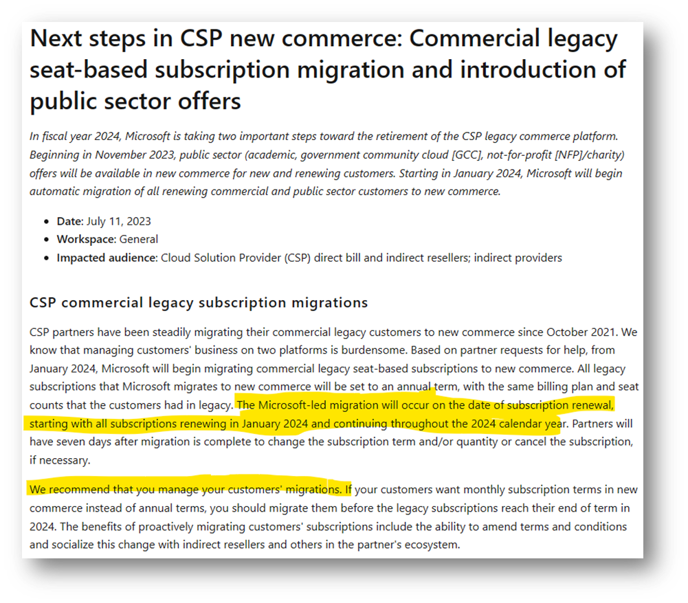 Migrate subscriptions to new commerce - Partner Center | Microsoft Learn