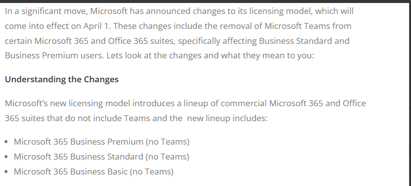 Komatoast Your post is likely being removed because it's not completely true. While Microsoft is ending Teams bundling, it's ALSO ending the Office Premium for nonprofits, and the only choices are to downgrade to basic, or pay a discounted rate for Premium. You are conflating two separate issues.
