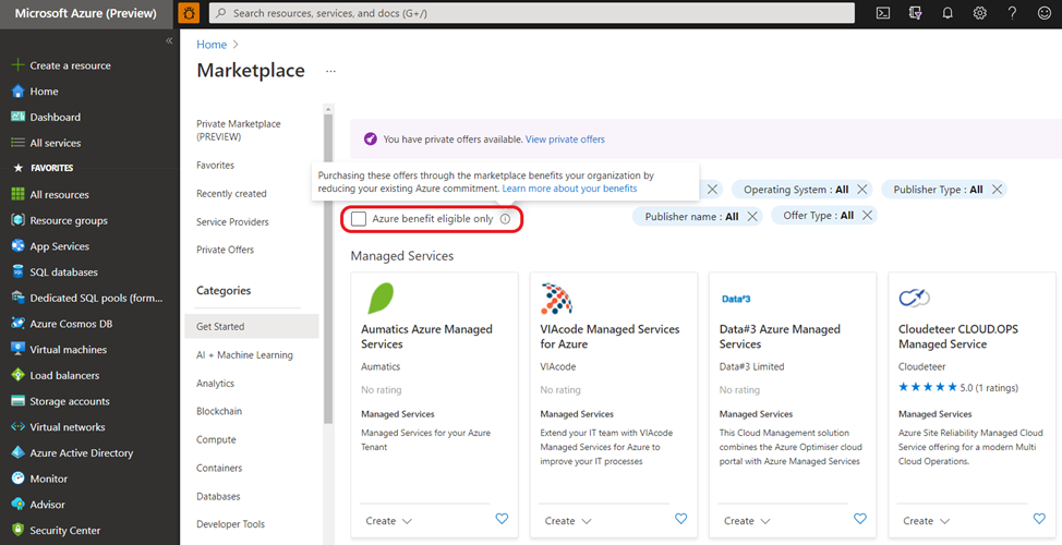 Eligible offers will be identified in azure portal with filter "Azure benefit eligible" making it super easy for customers to purchase offers right through their azure accounts.