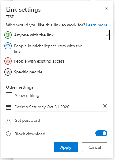 Hi there, I've uploaded a file to my business onedrive and set the access level to the below. Am I correct in saying that you have to be signed into a Microsoft account which has onedrive access ...