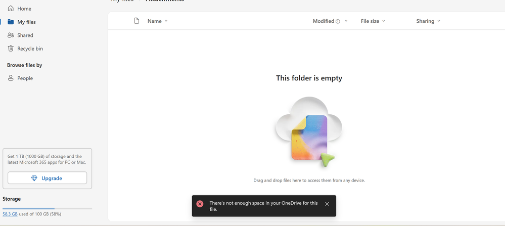 OneDrive claims that there is not enough space to sync or upload my files when there is enough space