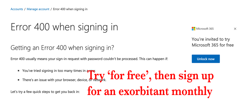 Essentially, MS is just too big, rich, complacent and stupid to care about service and helping the customer. It is pointless going around in circles just because you can no longer be bothered about your customers. I am now