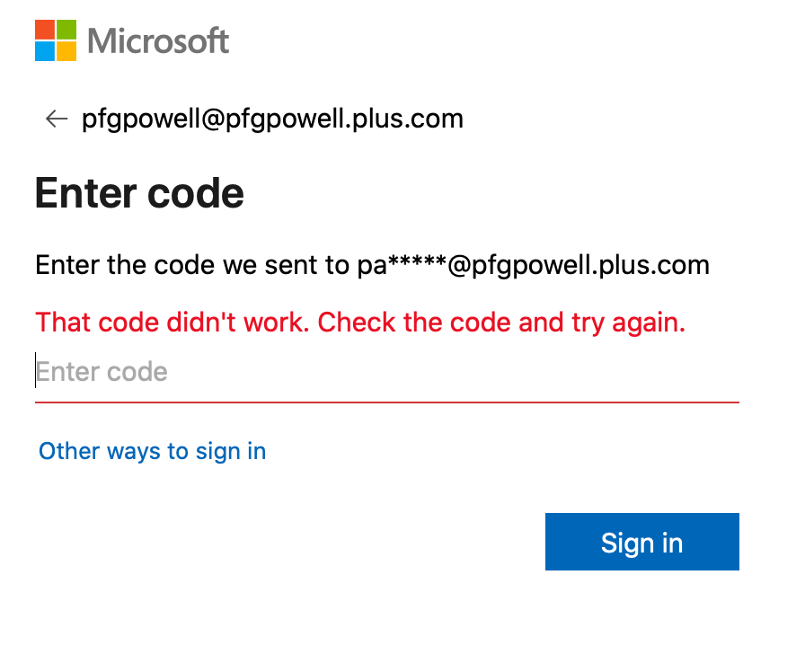 • I try to sign in with a code sent to an alternative address but this takes AGES to arrive - this morning at least 15 minutes - by which time I've tried something else and the code is no longer valid.