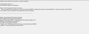 Hi all, OneDrive for business I believe is what is forcing a diskcheck and subsequent failure on reboot. The reason is that I made the mistake of storing a react js app there within my personal O...